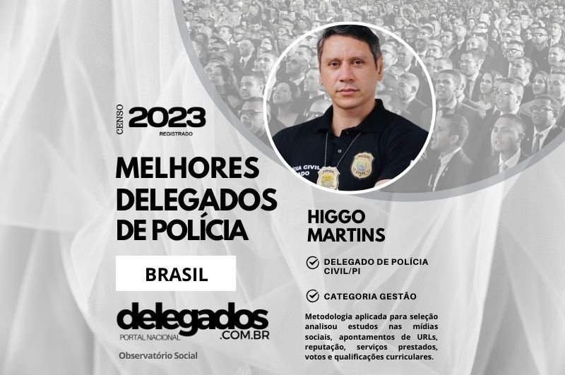 Portal Nacional dos Delegados HIGGO MARTINS MOURA é o atual presidente do Sindicato dos Delegados de Polícia do Piauí. Ingressou no quadro da Polícia Civil do Estado do Piauí no ano de 2008, após obter o primeiro lugar no curso…